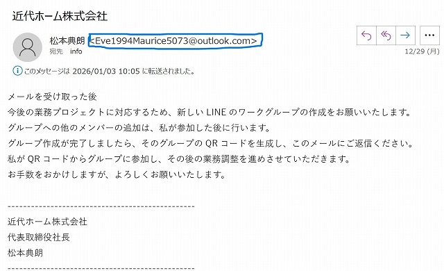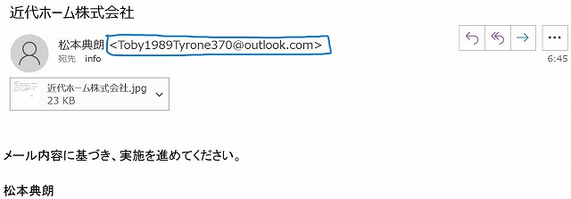 このたび、当社代表取締役社長・松本典朗の名前を装った「なりすましメール」が複数確認されております。