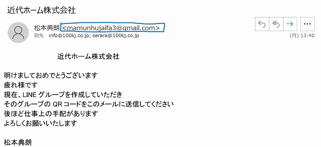 以下はいずれも差出人名は当社代表名を使用していますが、正規のメールではありません。