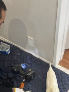 ついでに壁際にもコンセントを新設して使いやすいようにして行きます。