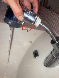 シャワーホース水栓の根元のパッキンが劣化し、知らぬ間に水漏れを