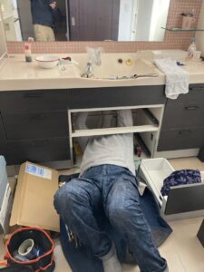 洗面化粧台の下に注意!