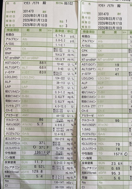 その中で、中性脂肪(※この期間に投薬も開始)や