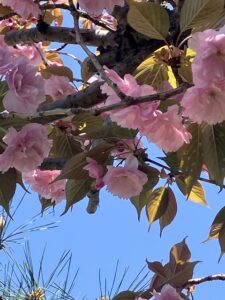 春の終盤のカンザンサクラ 花びらが多くて 茶色い桜餅の葉色の葉 季節を感じるひとときとなりました。