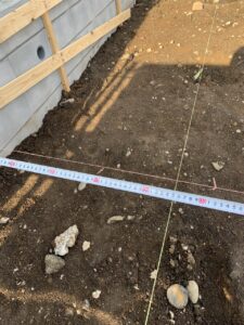 こうすれば、確実に建物の建つ場所が出せる。という寸法を確認します。