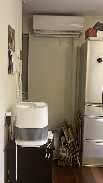 エアコンの前に置いていますので加湿した空気が室内を循環します。