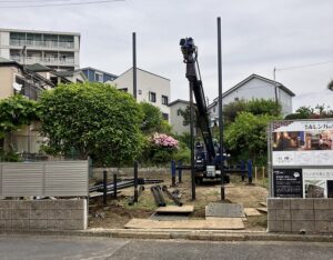 先日、地盤改良工事(杭打ち工事)を行いました