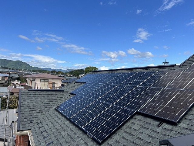 秋空の下、いい天気に恵まれました、太陽光パネルが輝いています。