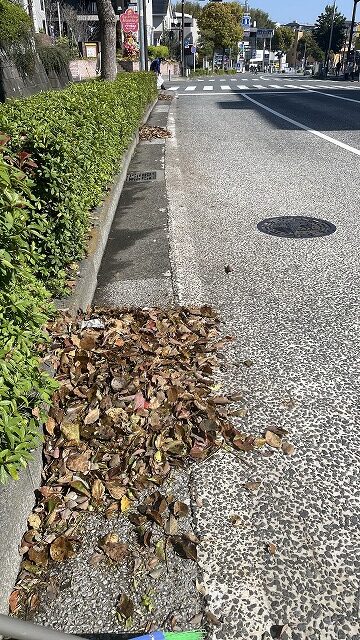 その雨風の余波で、我が横浜・港南台駅前も大量の落ち葉でした。