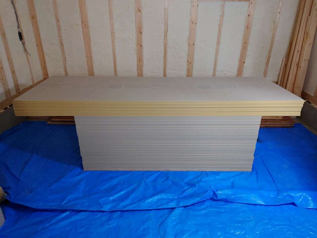 傷付けずに、重たい石膏ボードをこんなにもたくさんの枚数を運んでくれる業者さんには本当に頭が下がります。