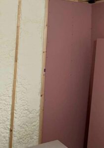 こちらは、間柱が小さかったようで、胴縁との間にベニヤを挟んであります。