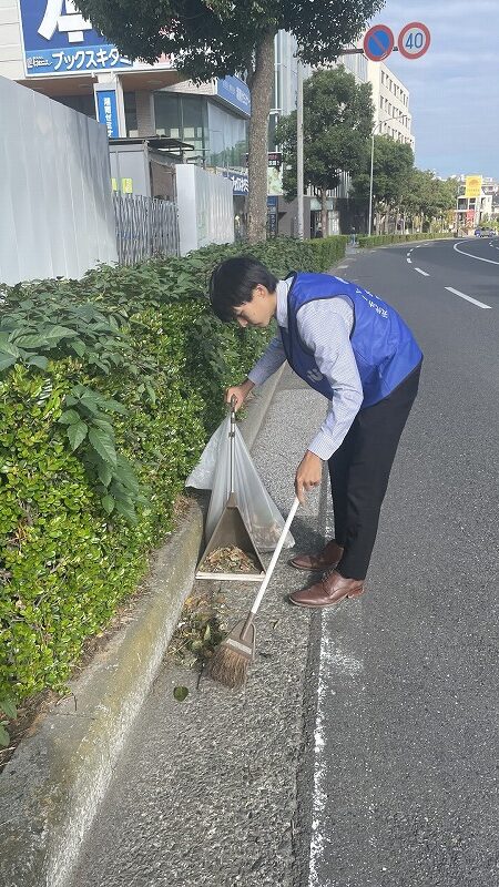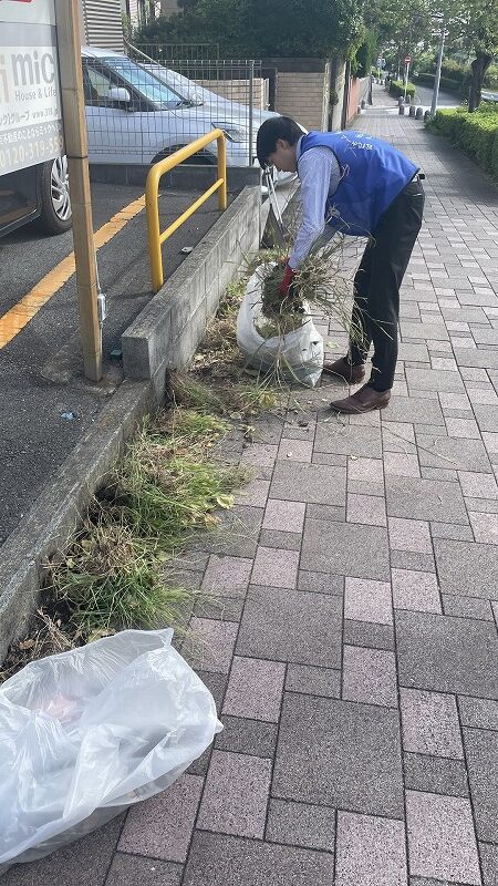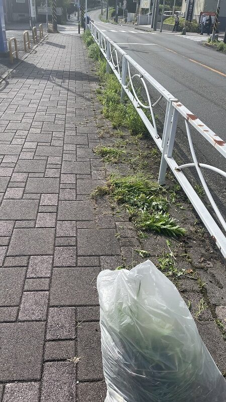 今回駅前は少し落ち葉も少なかったので、5分ほど移動し別のエリアの清掃もしました。