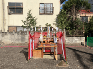 地鎮祭は、これからの工事が安全に進むように土地の神様にご挨拶をする大切な儀式。