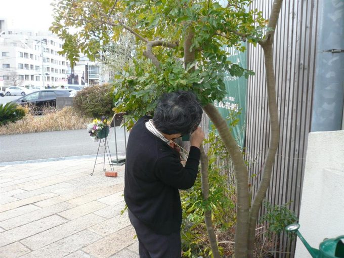 聞いてみると植えられている植木に名札を取付けているとのこと。