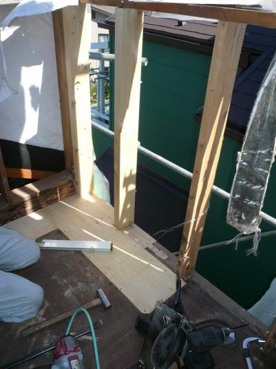 今回は手摺も傷んでいたので、床と共に壁も剥がして下地から作り替えです。